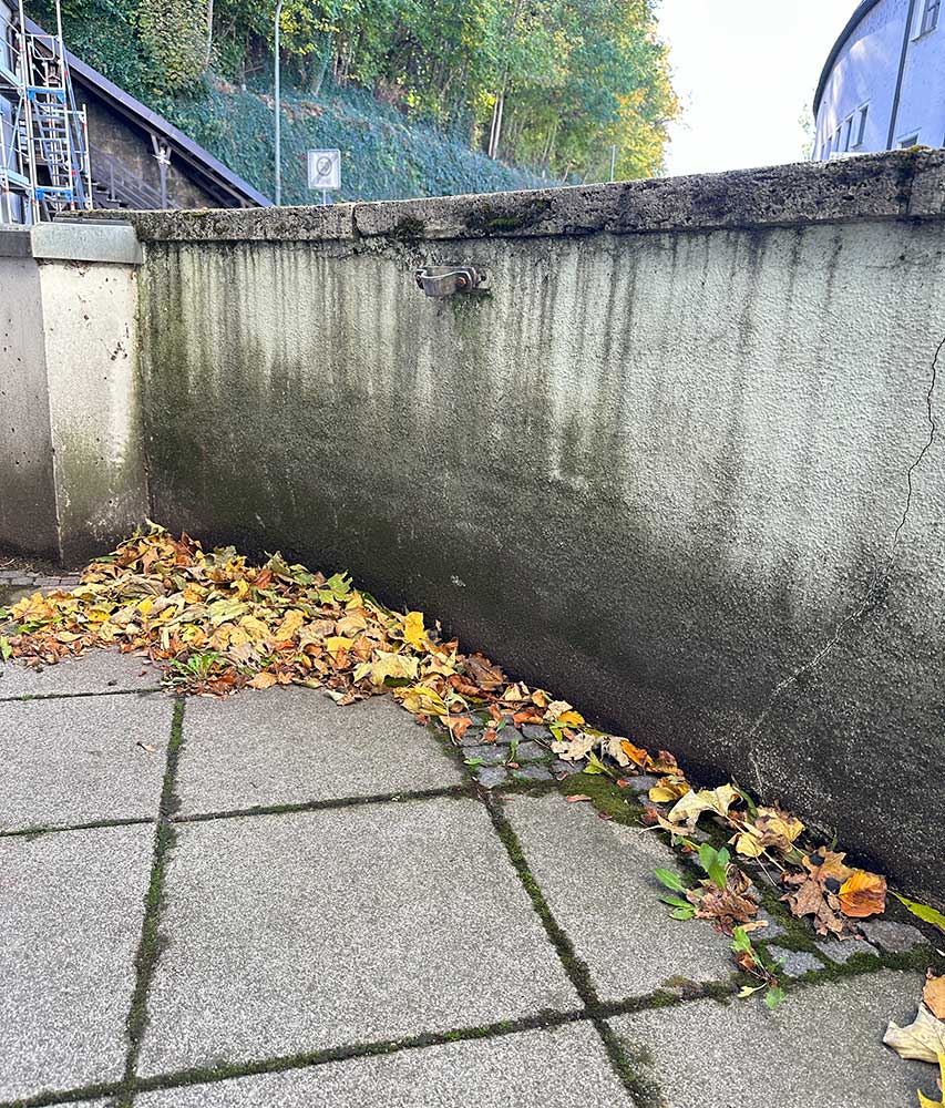 Unsere spezielle Versiegelung für Stein und Beton dringt tief in die Struktur der Oberfläche ein. Nach Aushärtung entsteht ein optimaler Schutz gegen Verschmutzungen und Verfärbungen, Abrieb und vor allem Eindringen von Wasser.